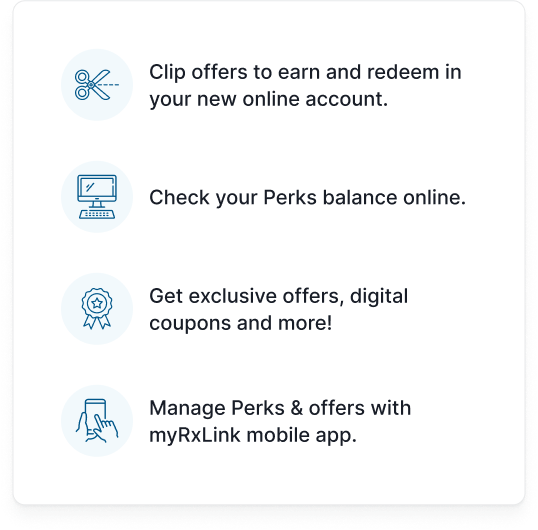 - Check your Perks balance online and in the myRxLink App